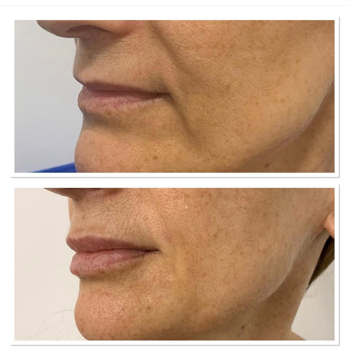 El tratamiento se realiza justo en la hendidura de la arruga sin provocar abultamientos. Este tratamiento dota de estructura y ofrece un efecto lifting sin afectar a la expresión del rostro y sin necesidad de cirugía en el tercio inferior.